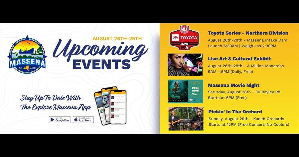 From Pro Fishermen Touring the St. Lawrence River to A Live Art & Cultural Exhibit being painted on the North facing wall of A Million Monarchs Boudoir located at 2 Main Street Massena NY, there is surely lots to do in this charming little village! (above photograph courtesy of Explore Massena)